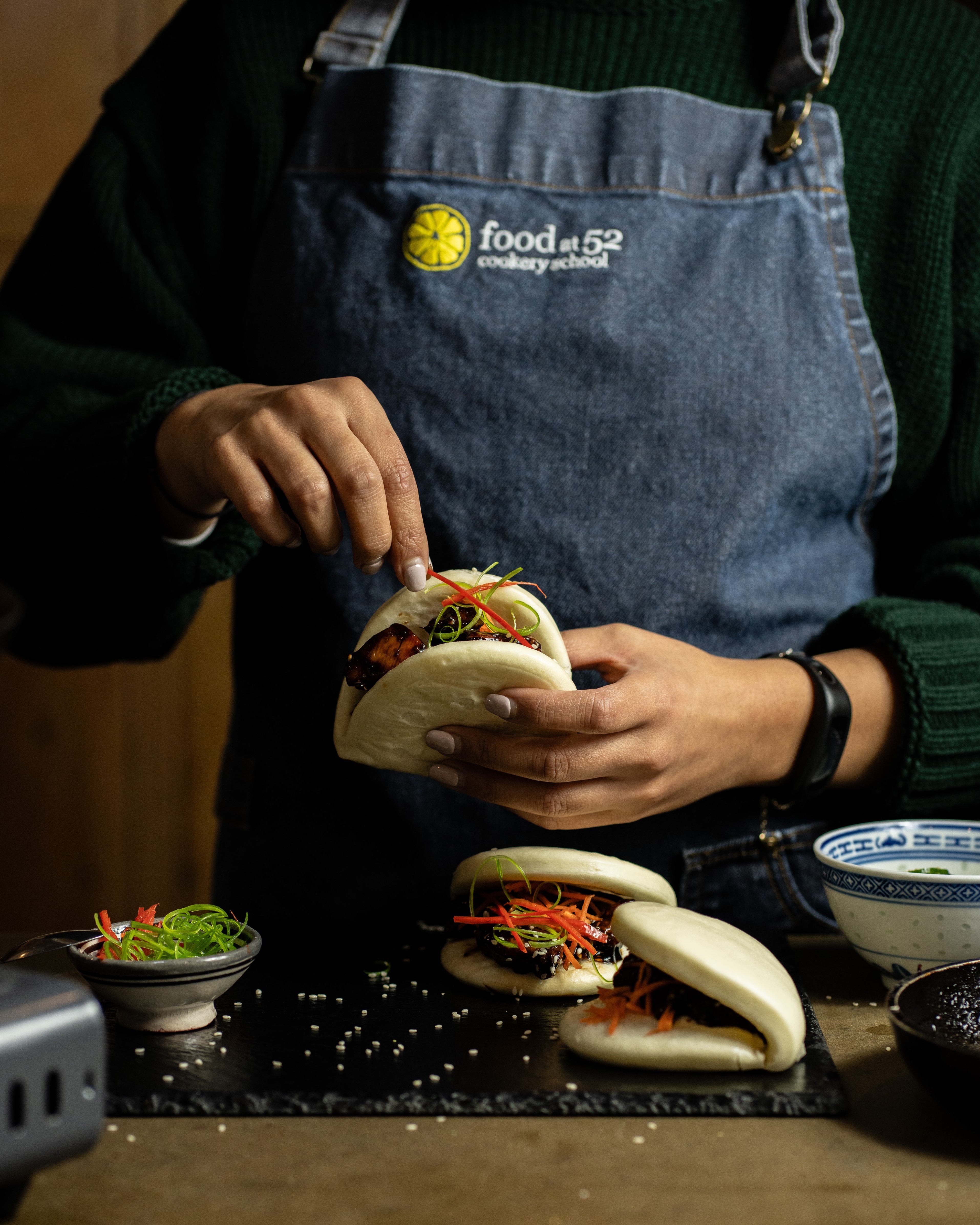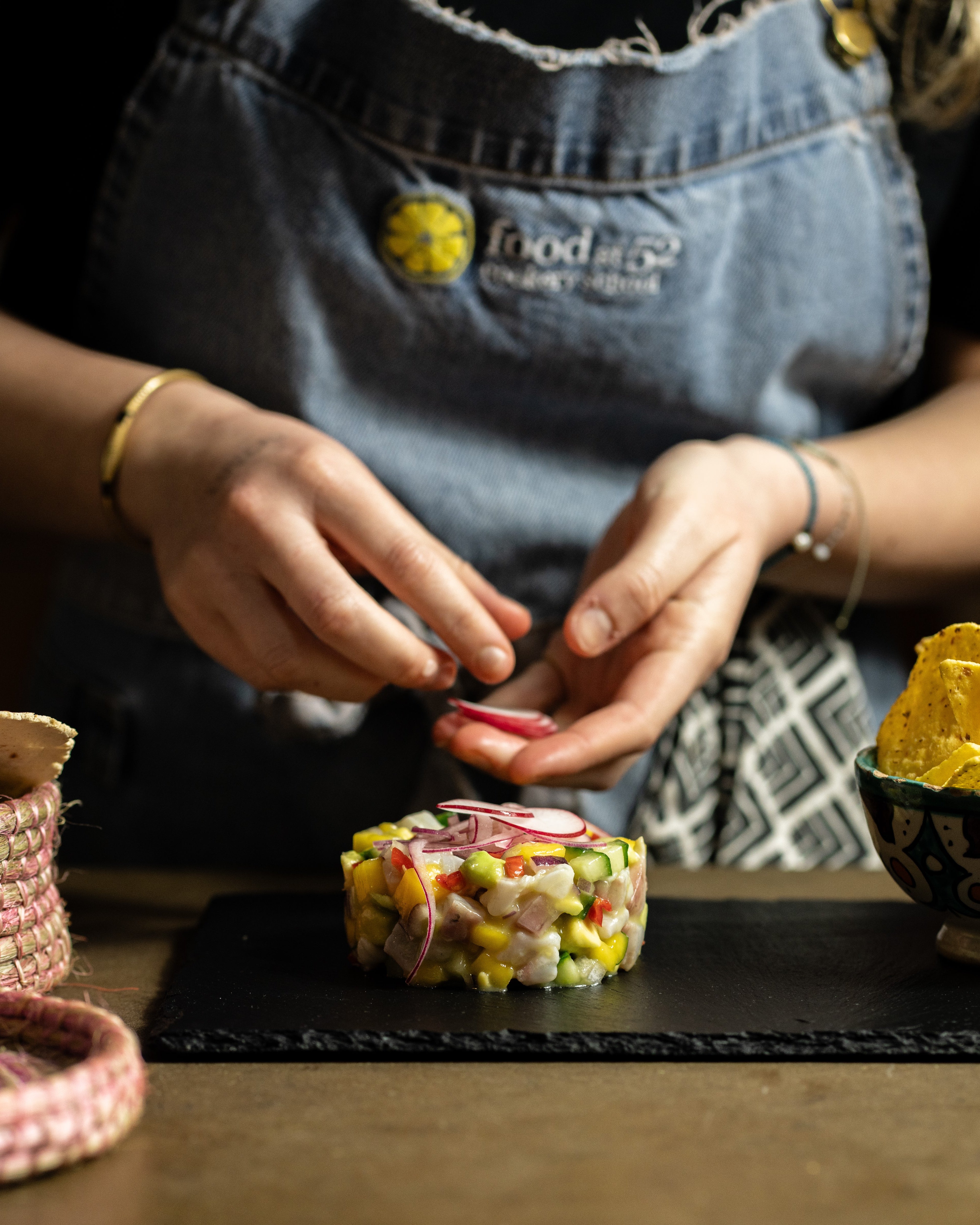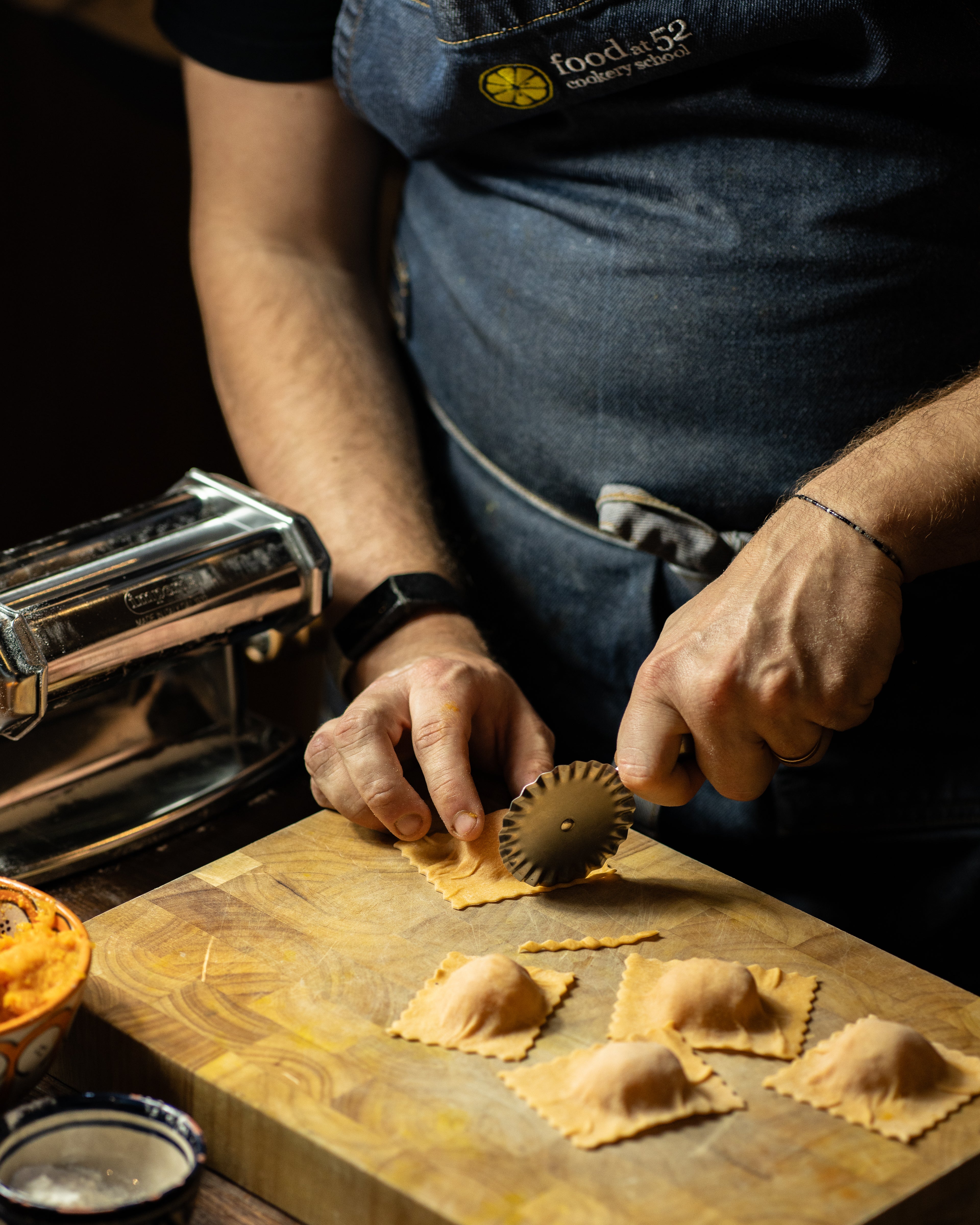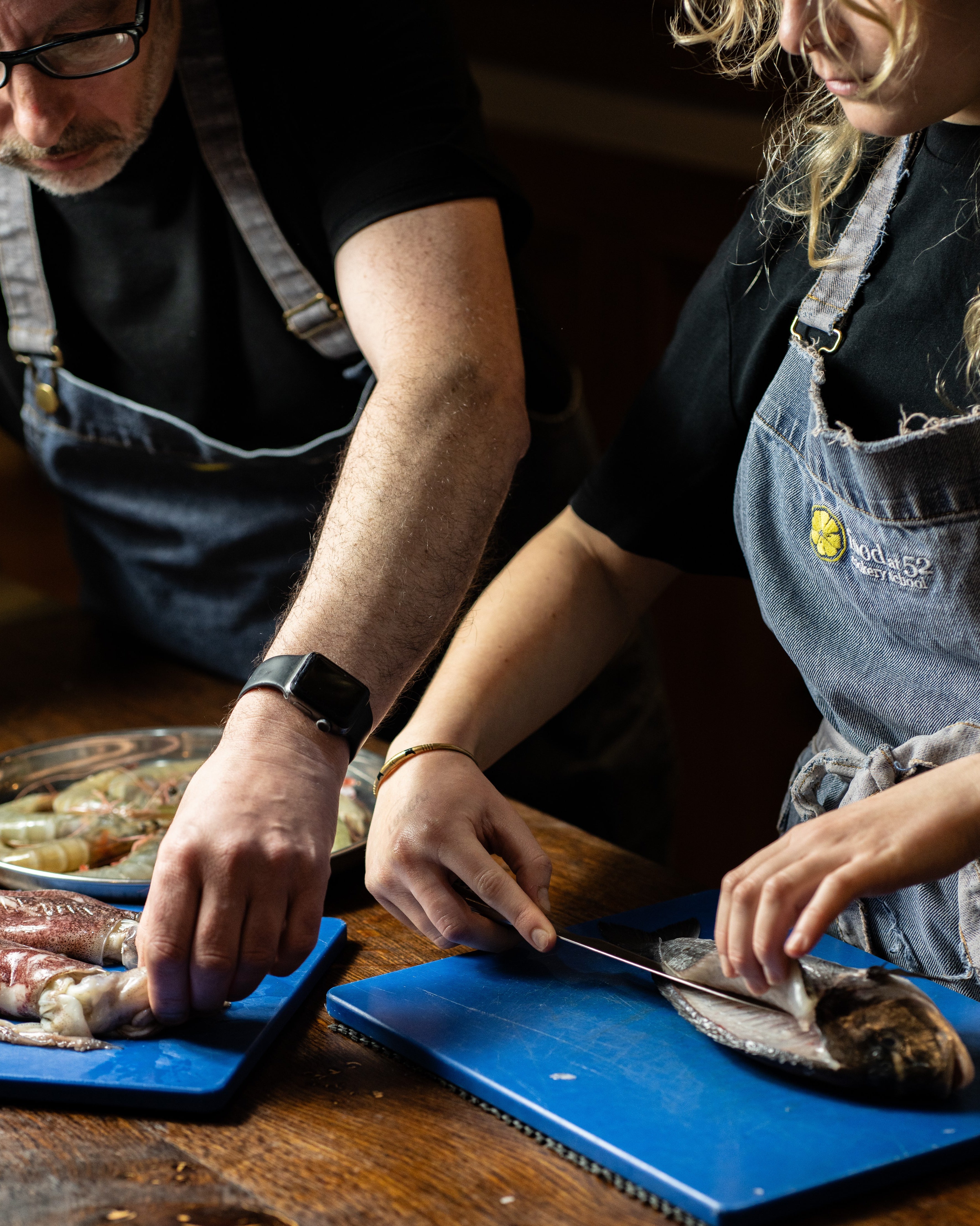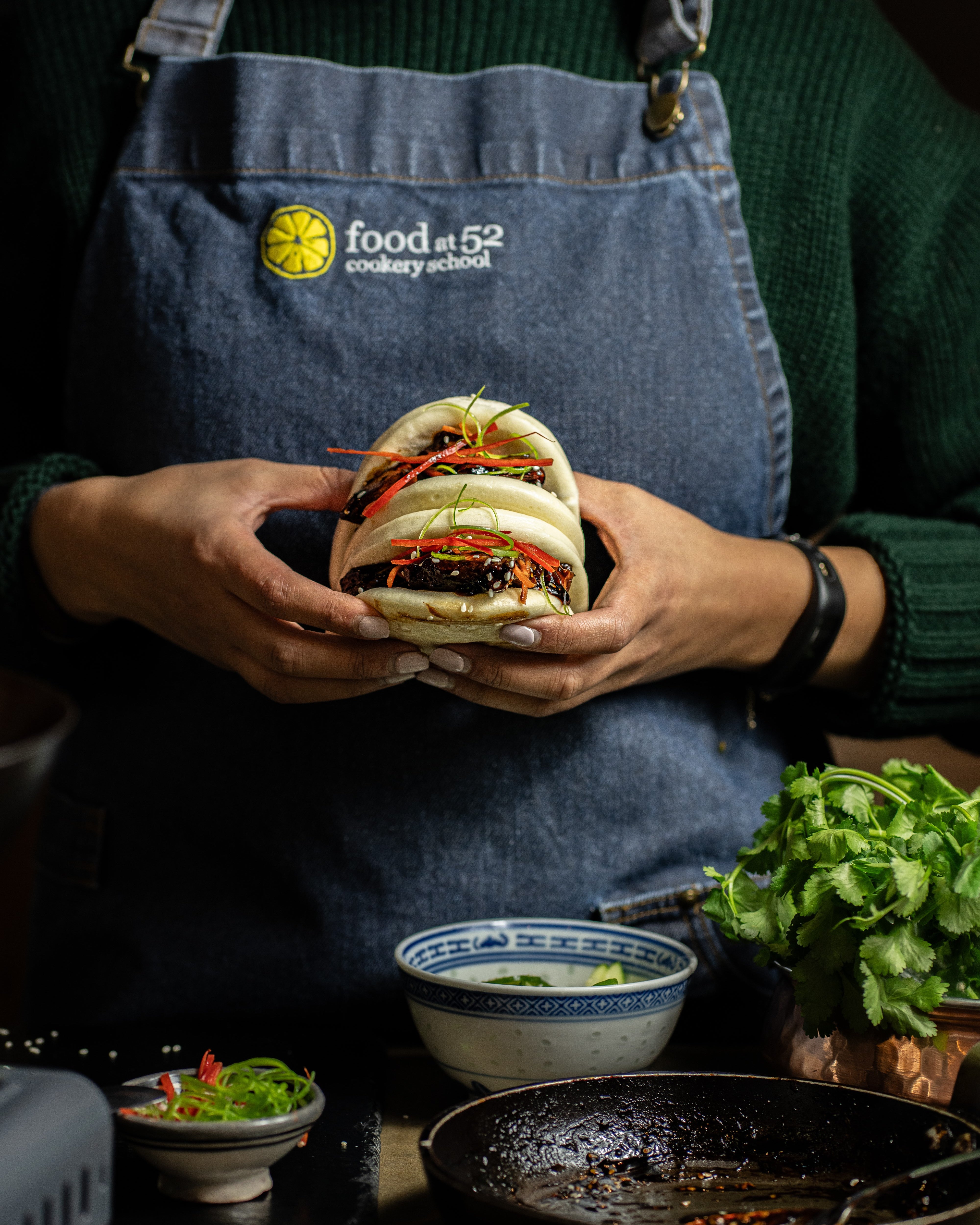 Add to this free flowing wine, funky music, laid-back denim aprons and friendly conversation and you see how we retain our top position on TripAdvisor and Google as a leading London cookery school. We look forward to welcoming you to the Food at 52 experience.