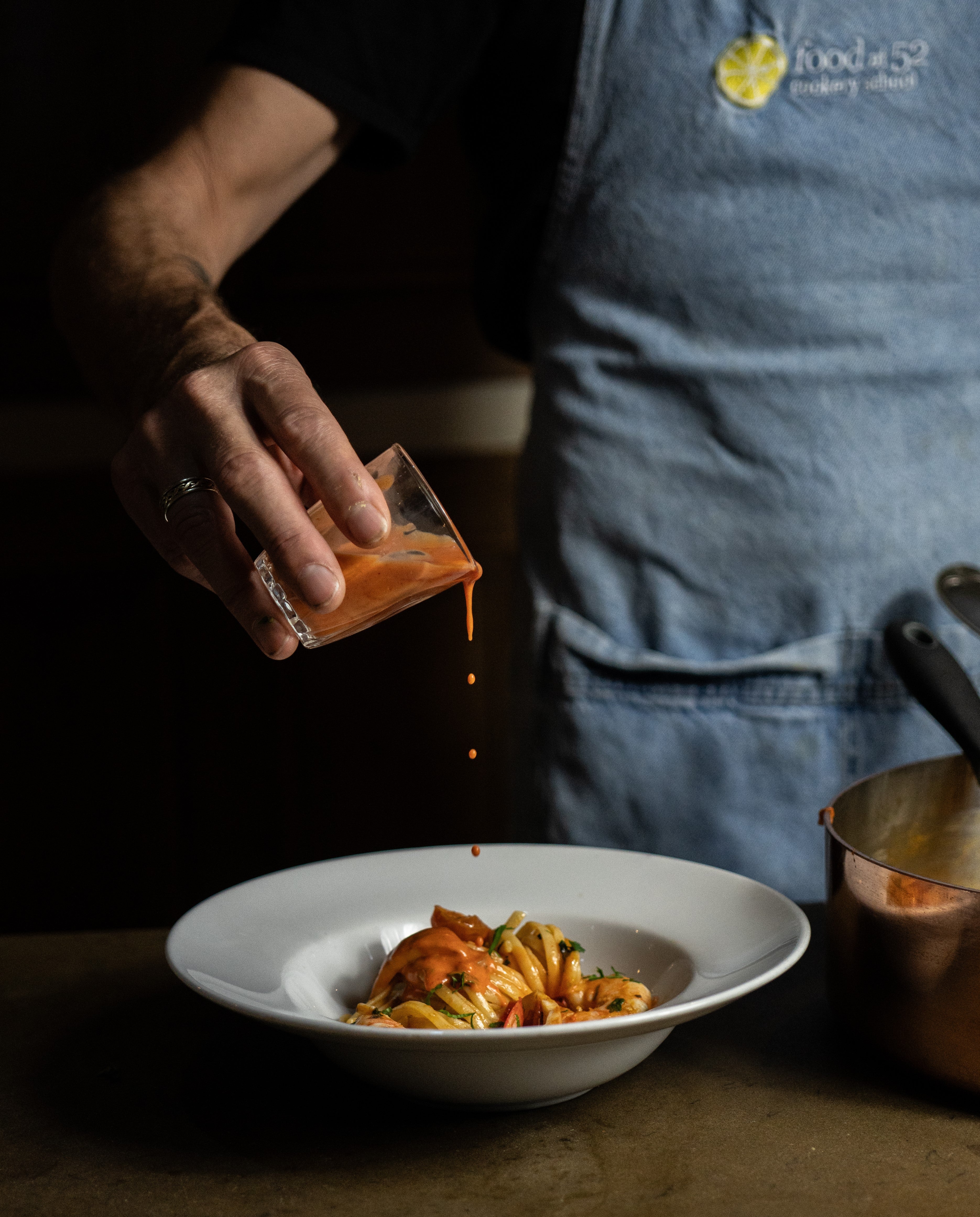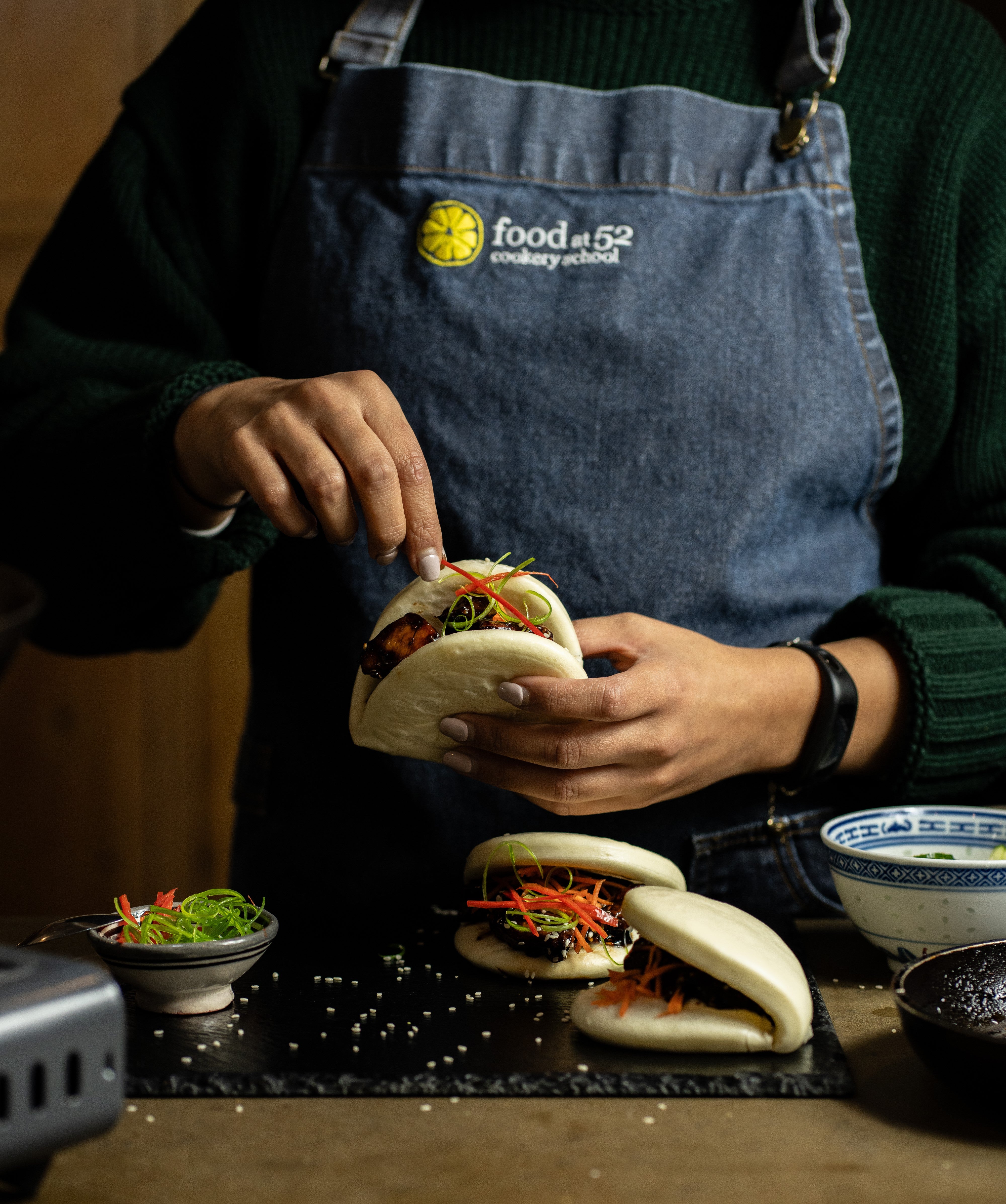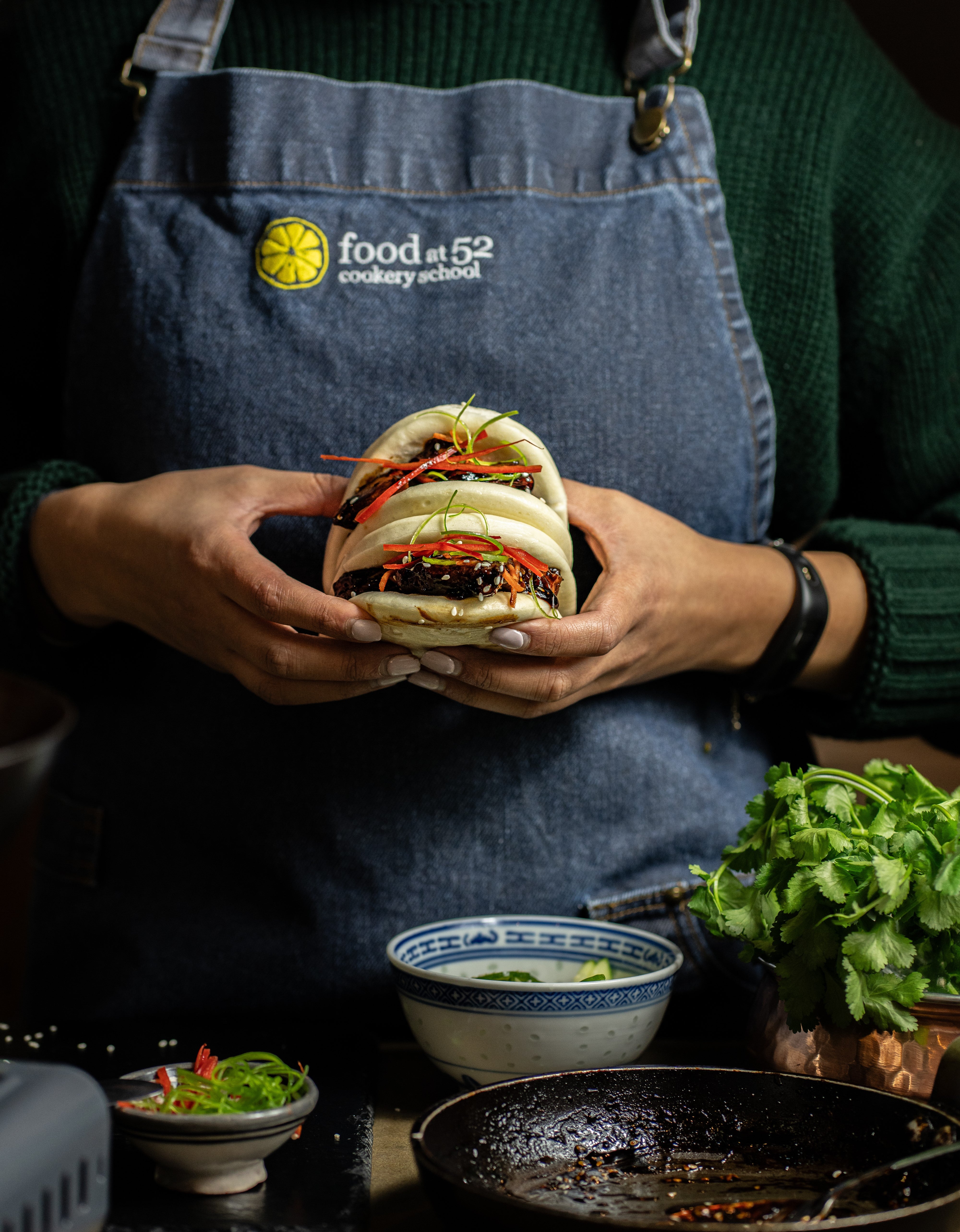 Add to this free flowing wine, funky music, laid-back denim aprons and friendly conversation and you see how we retain our top position on TripAdvisor and Google as a leading London cookery school. We look forward to welcoming you to the Food at 52 experience.