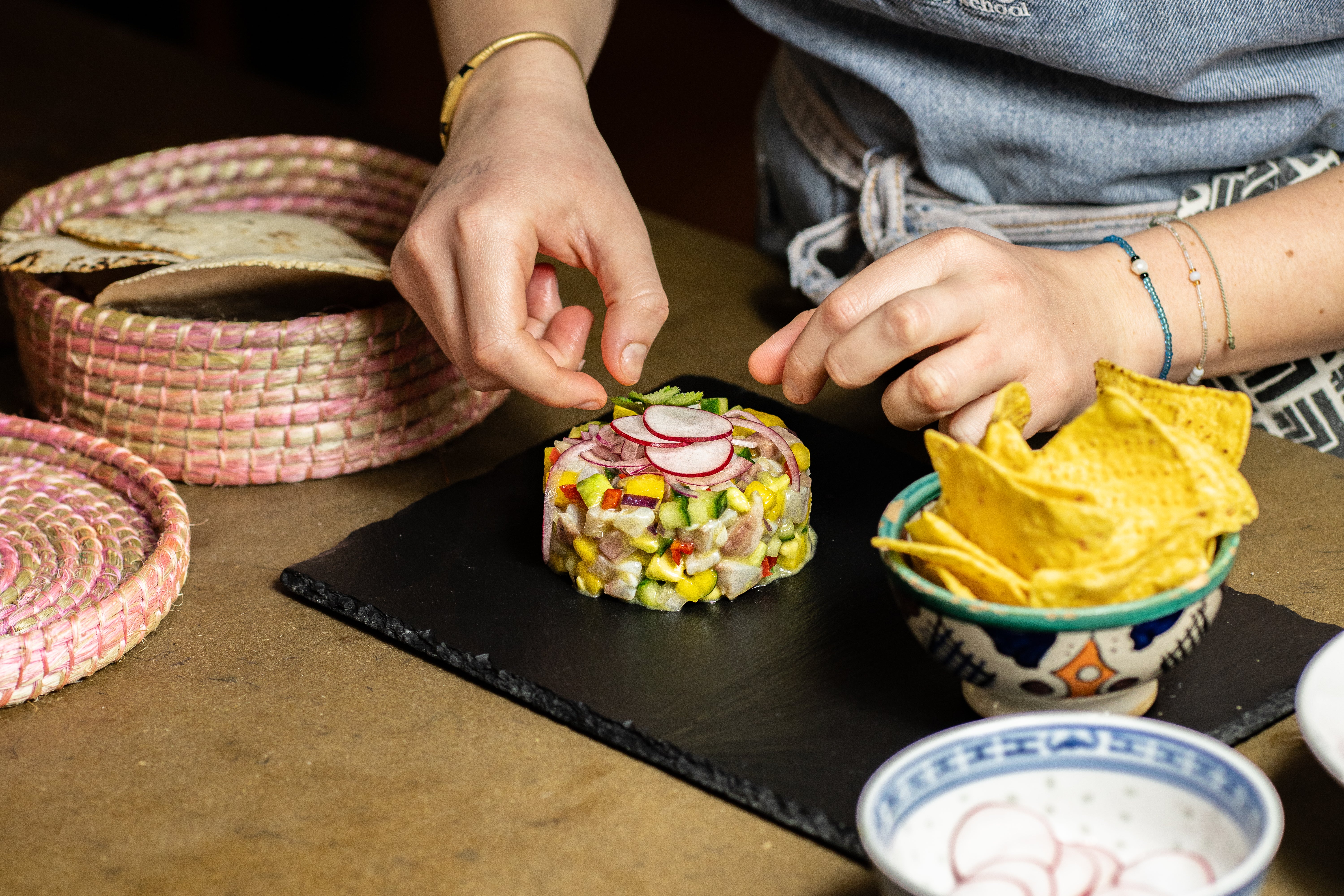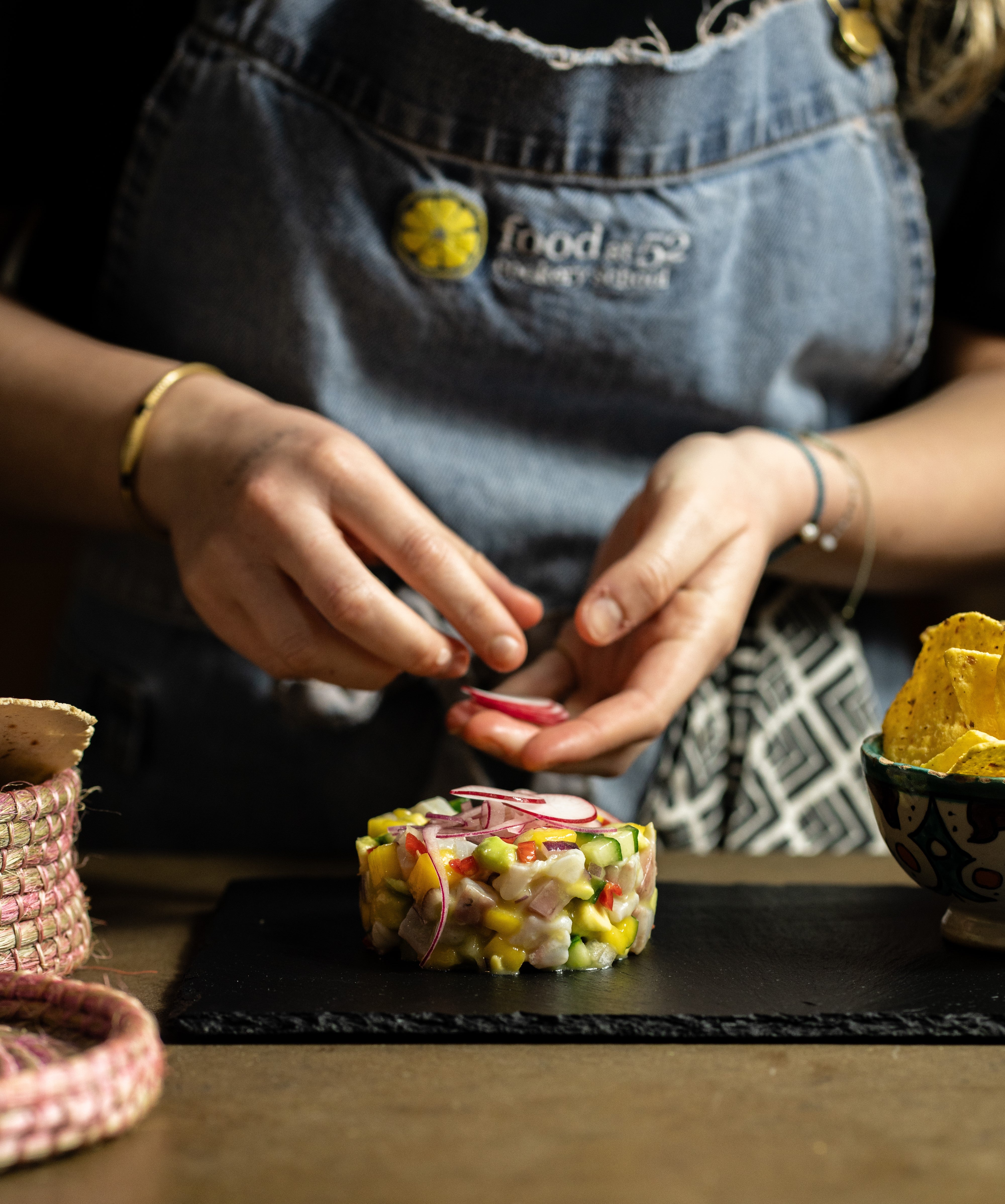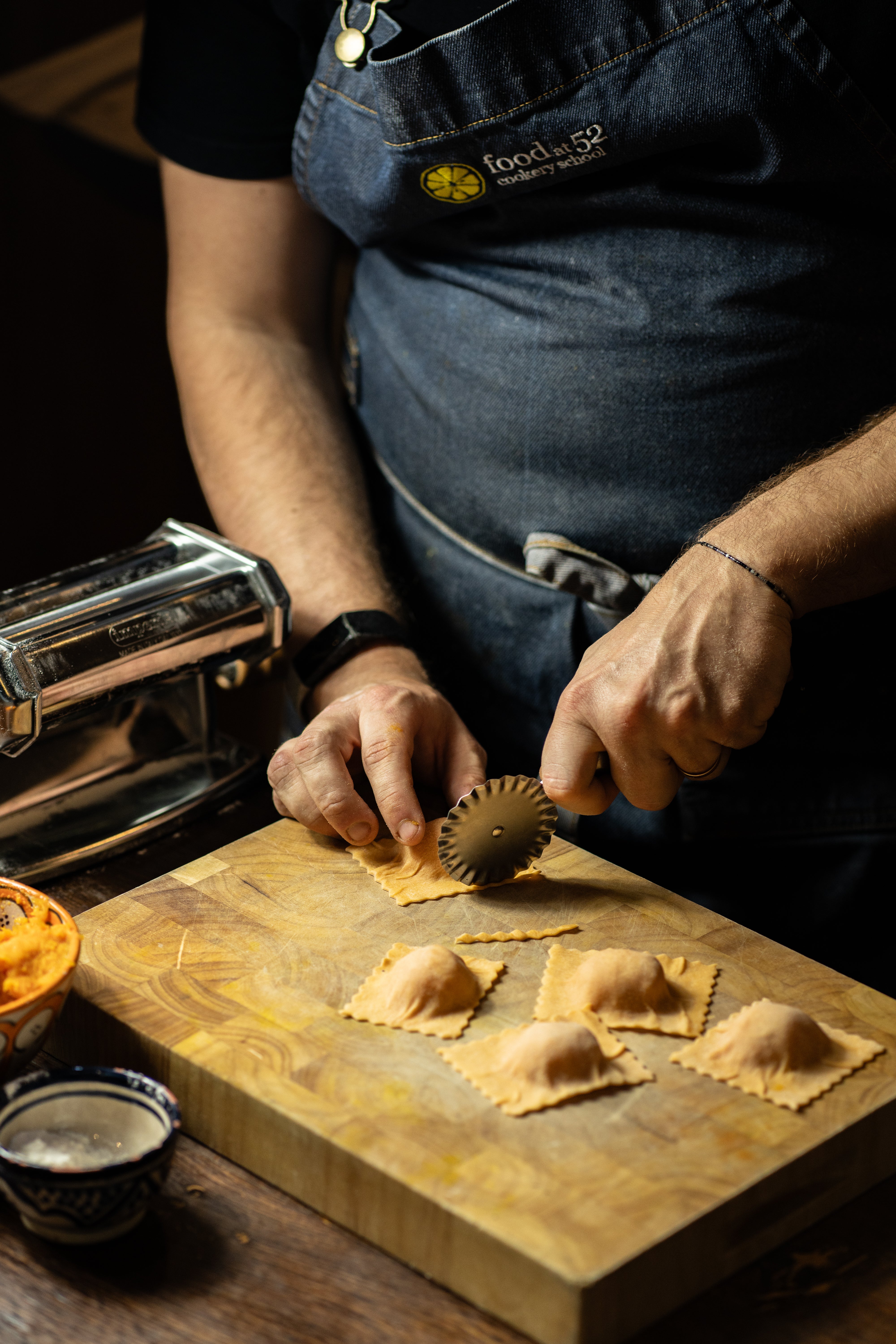 Add to this free flowing wine, funky music, laid-back denim aprons and friendly conversation and you see how we retain our top position on TripAdvisor and Google as a leading London cookery school. We look forward to welcoming you to the Food at 52 experience.