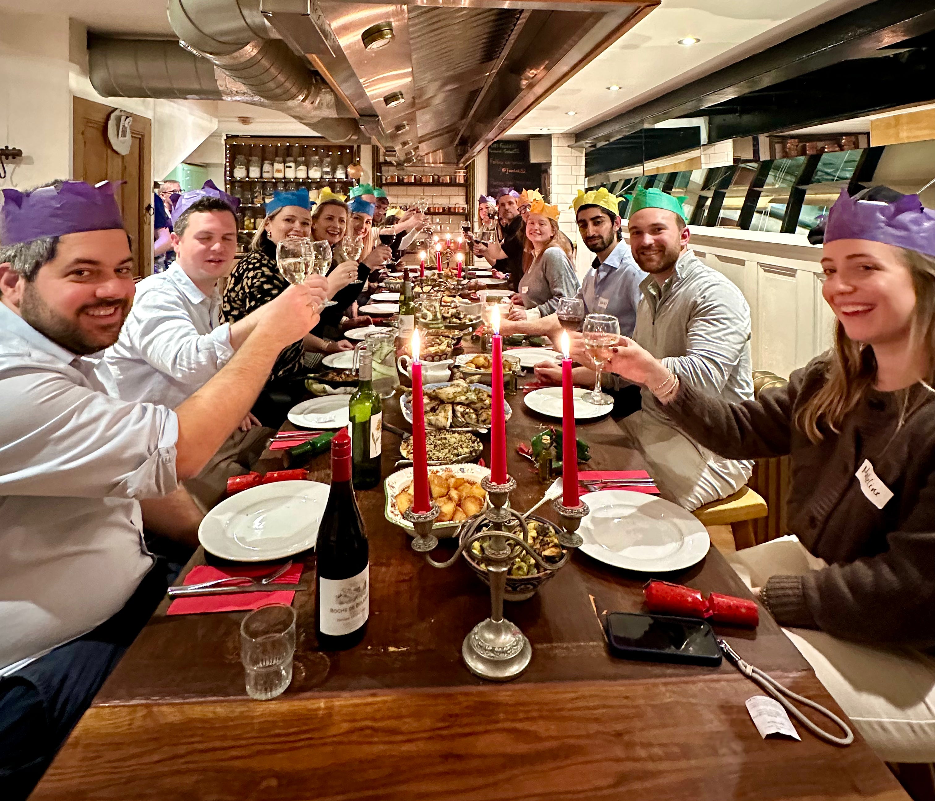Our Christmas cooking classes are a popular choice for exclusive corporate Christmas parties. A great alternative to the usual office Christmas party, your team will cook at least three courses and then sit down to eat the feast they have created together with free flowing wine throughout.
